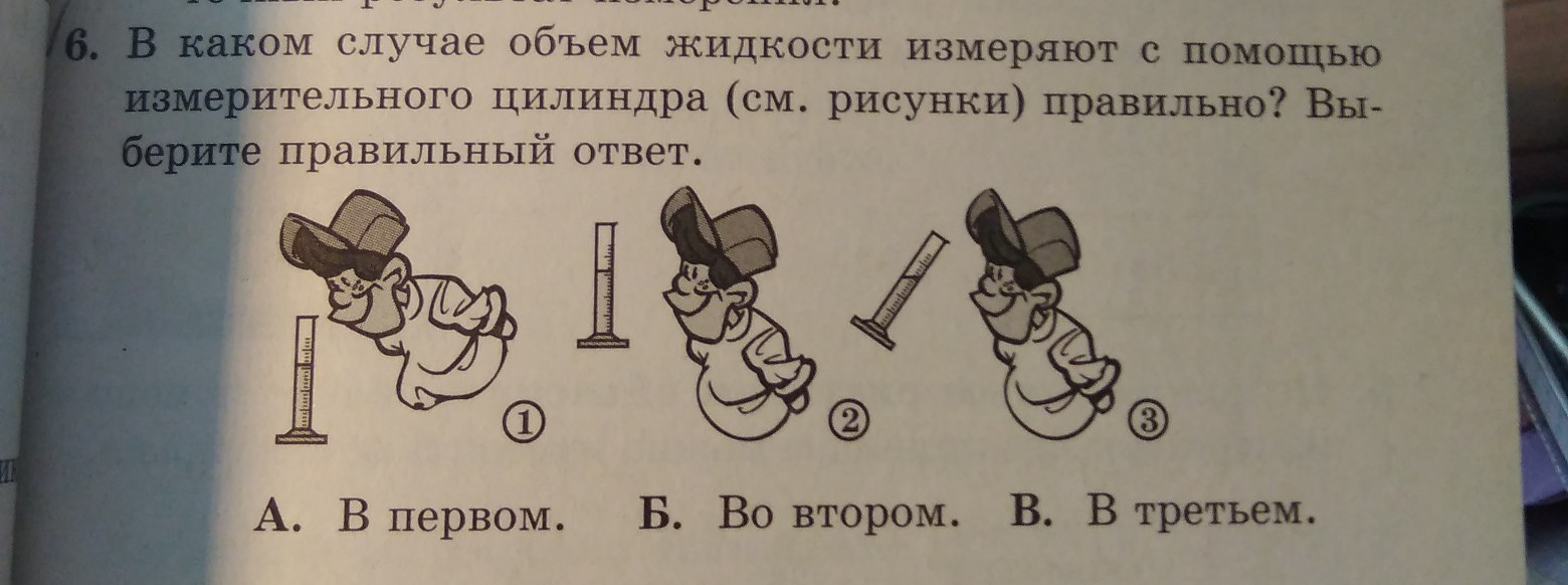 Б. Так как в 1 ты ничего не увидишь кроме жидкости, а в третьем жидкость наклонена и жидкость находится не на правильной метке
