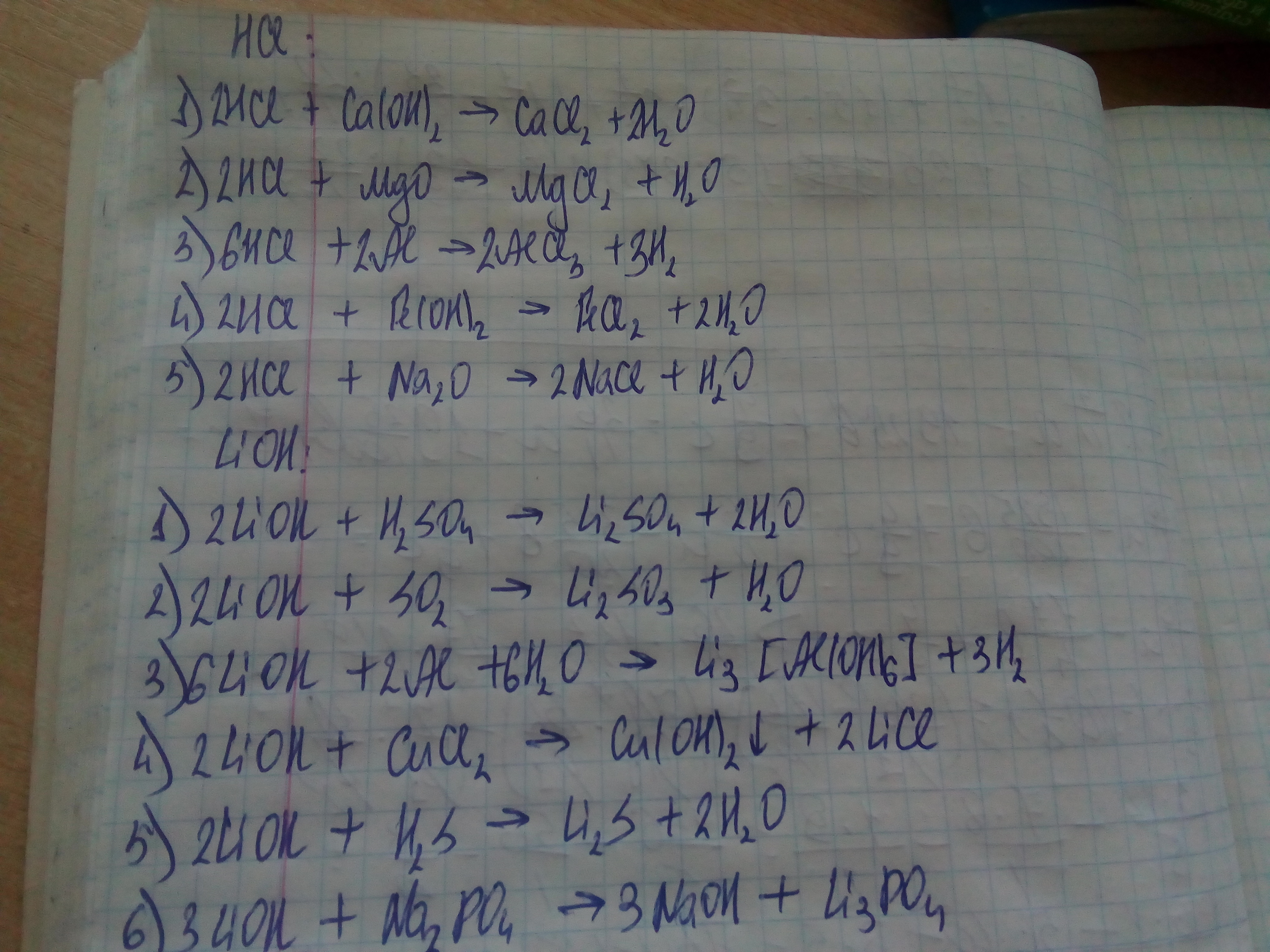 С какими из них реагирует соляная кислота (HCl), гидроксид лития (LiOH)? Составьте уровнение реакций.