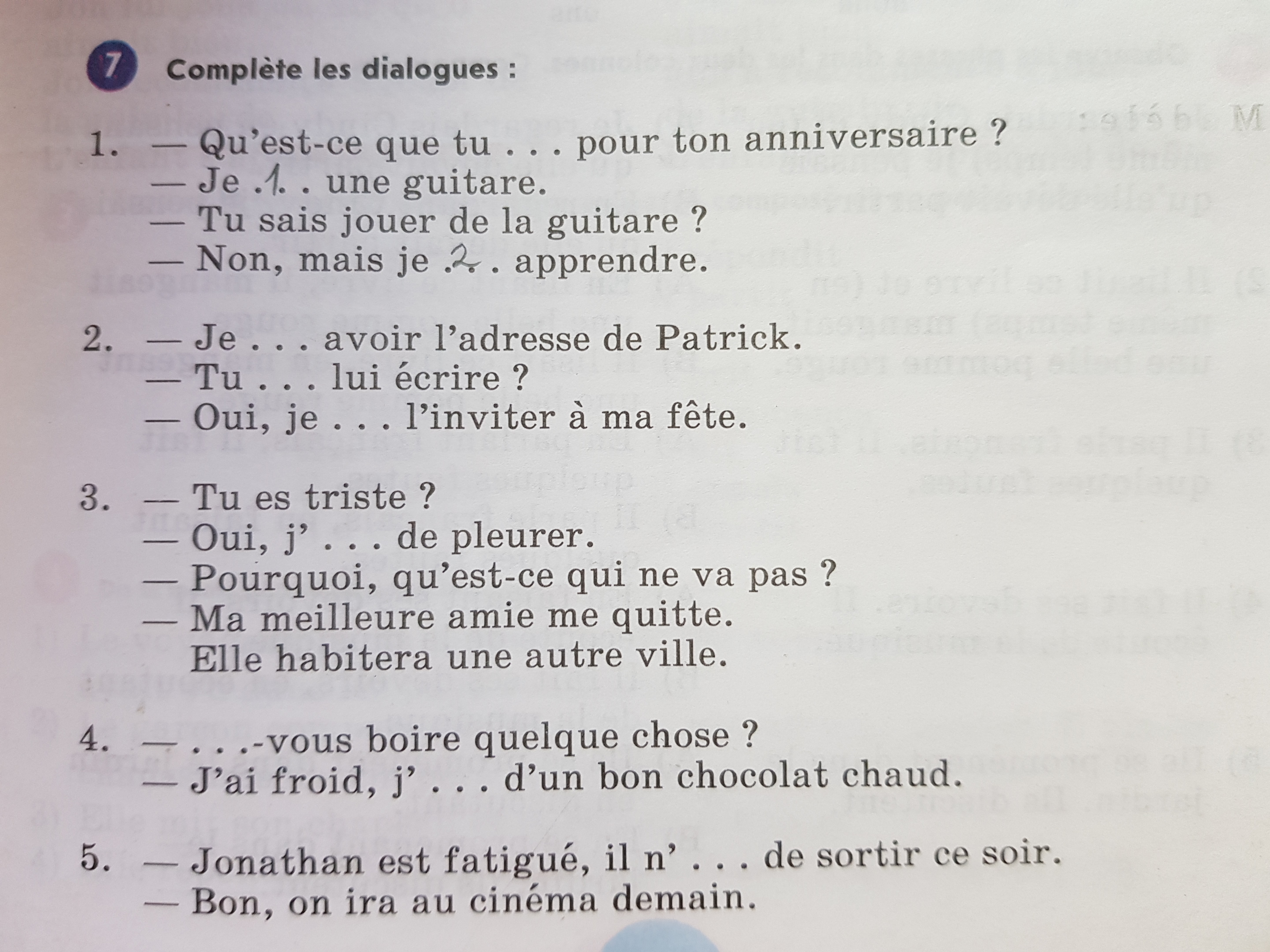 7. Complète le dialogue: