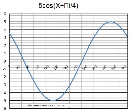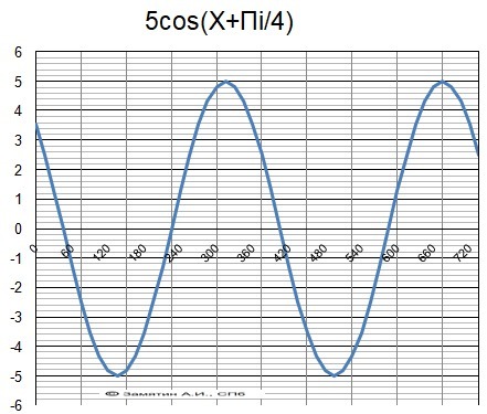 π/4 = 45° - сдвиг НАПРАВО (При х= -45° значение БЫЛО = 1)