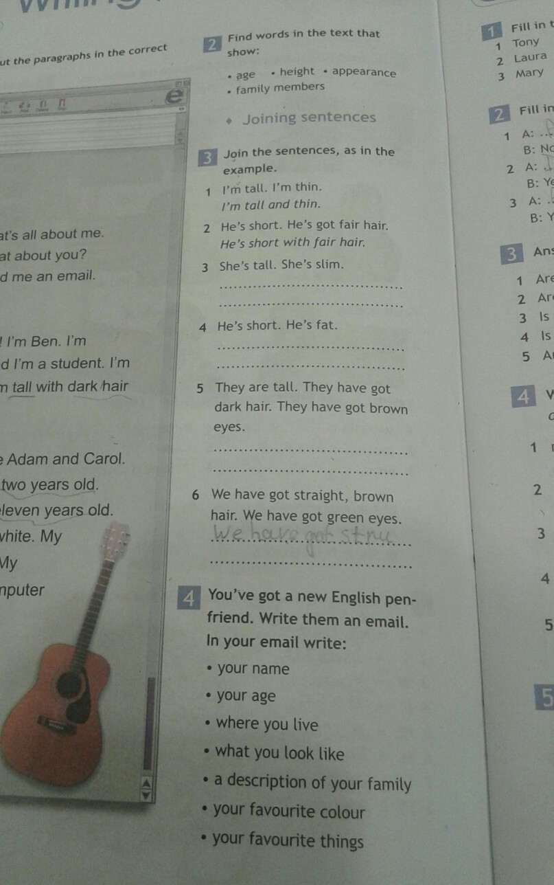 6.We have got straight, brown hair and green eyes.