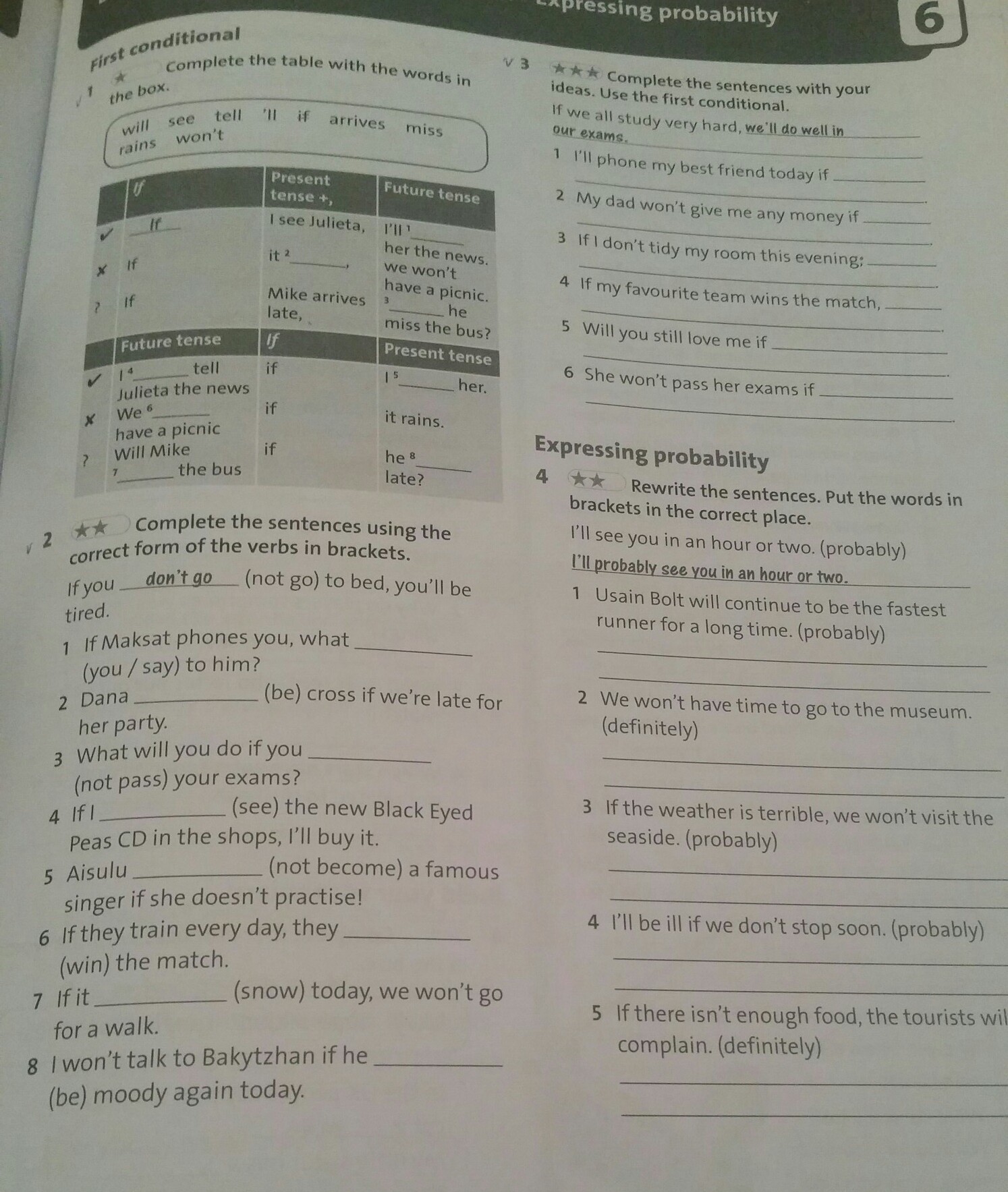 1) will you say 2)will be 3)don't pass 4)see 5)won't become 6)will win 7)snows 8)is