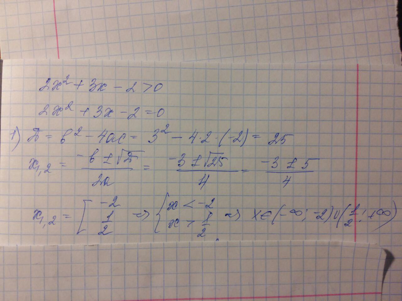 т.к неравенство больше 0, следовательно будет 2 ответа: один <0, другой >0. т.к корень -2 - отрицательный => он примет вид x<-2, а корень 1/2 - положительный => примет вид 1/2>0