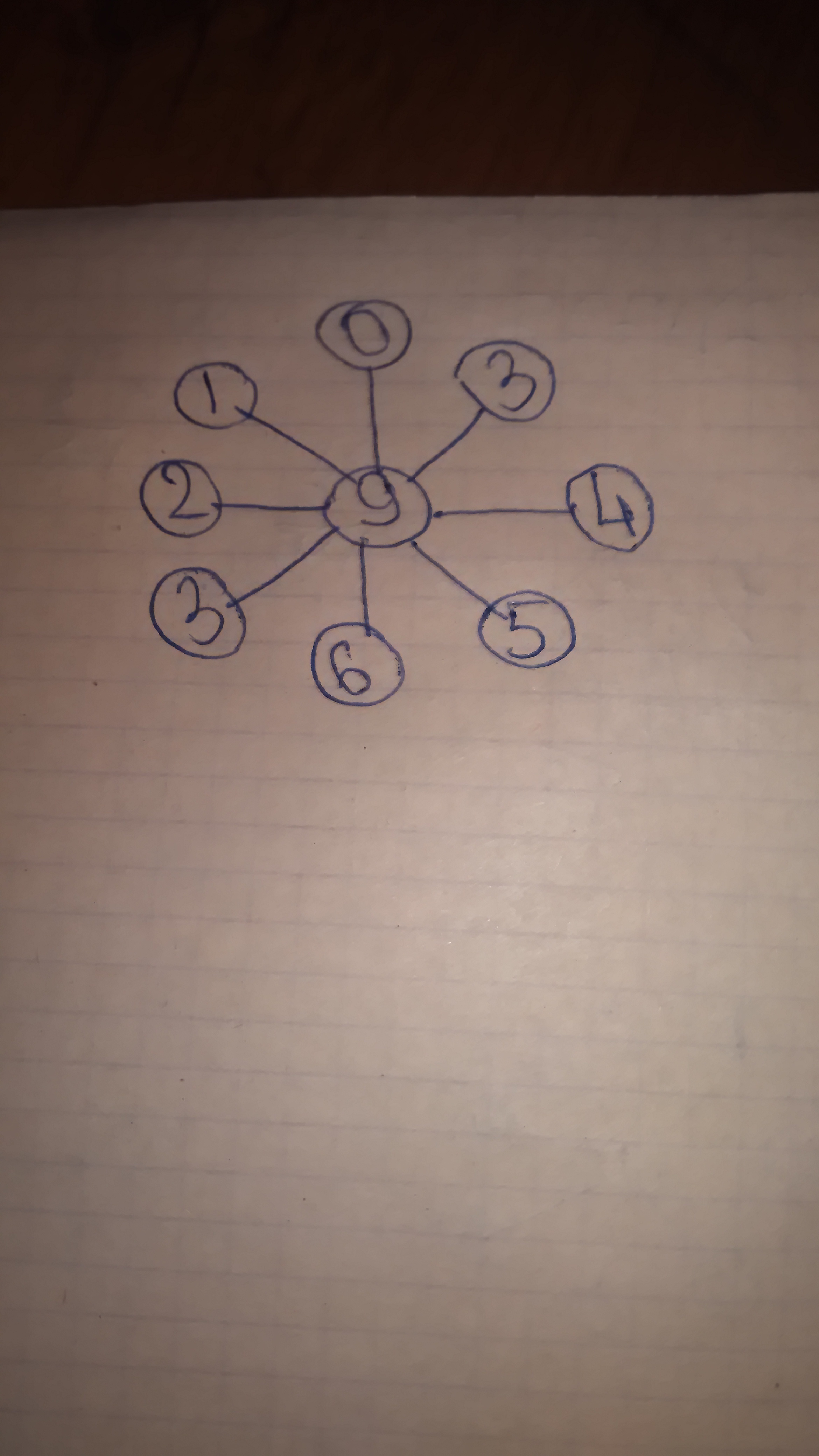 Расположил цифры от1до9 а отделах вкладом по одному числу пересекающихся олимпийских колец так что бы сумма чисел в любой паре пересекающихся колец таких пар четыре была равна22