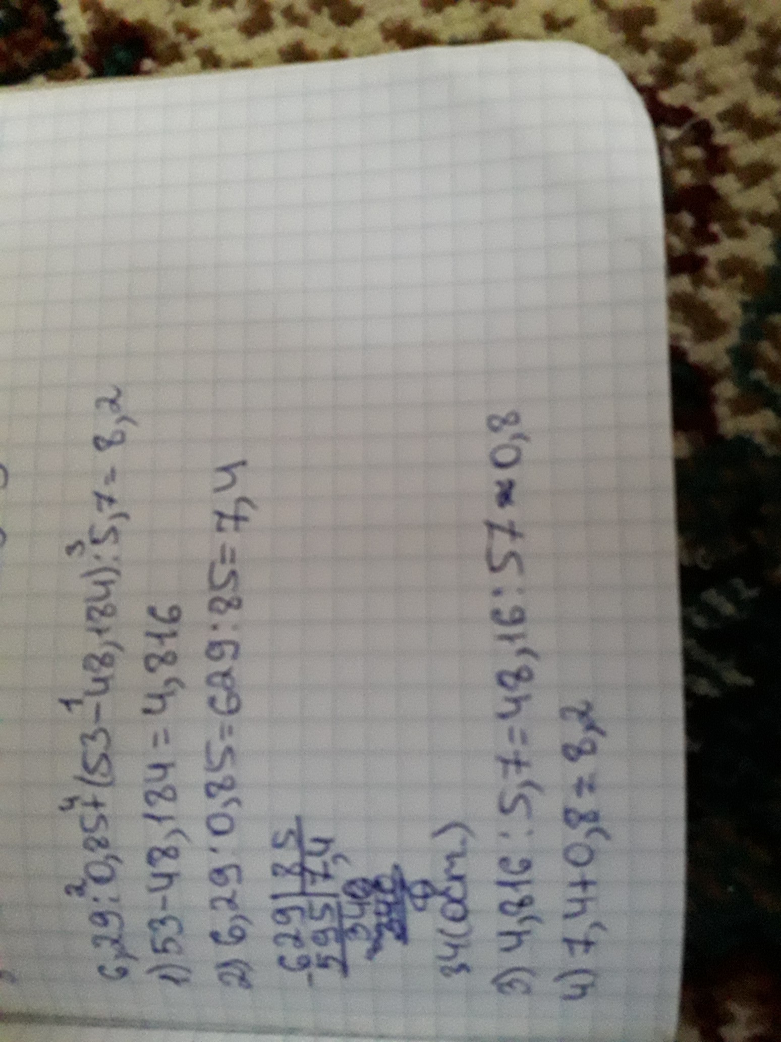 там в 3 действии получилось приблизительно число,т.е. Я его округлила
