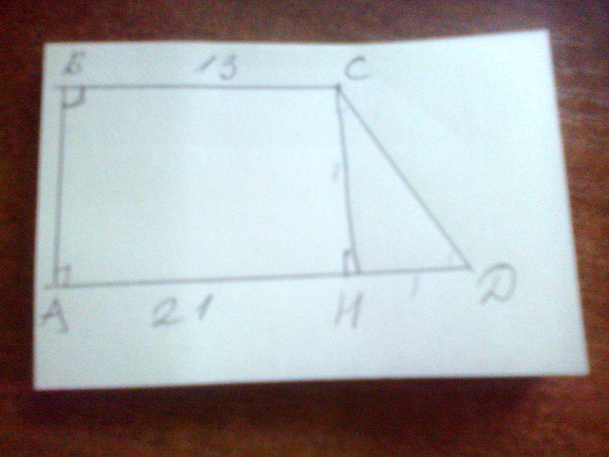 Основания прямоугольной трапеции равны 13 и 21. Ее