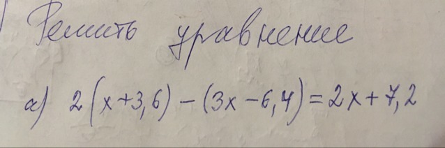 2(х + 3,6) - (3x - 6,4) = 2x + 7,2