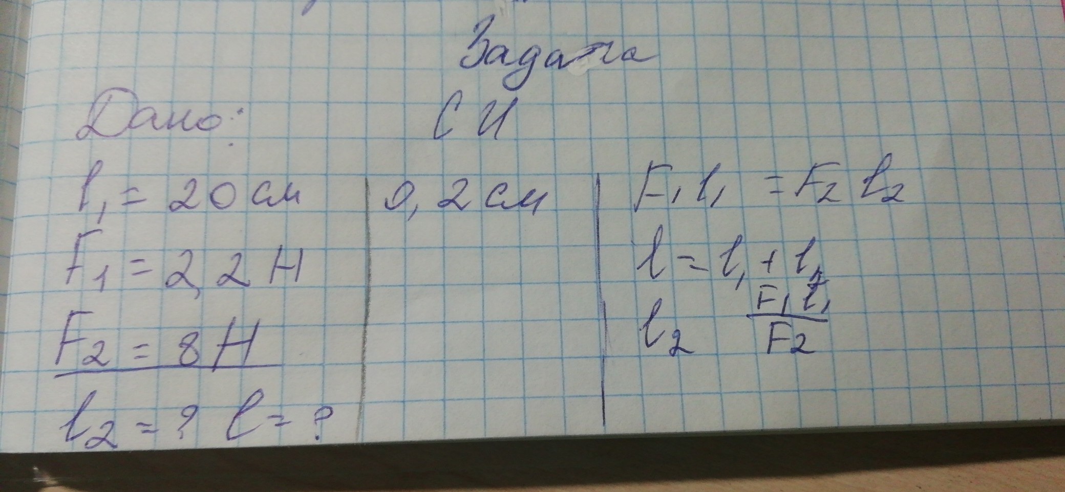 l2 =  frac{2.2h times 20cm}{8h} = 5.5cm \ l = 20cm + 5.5cm = 25.5cm