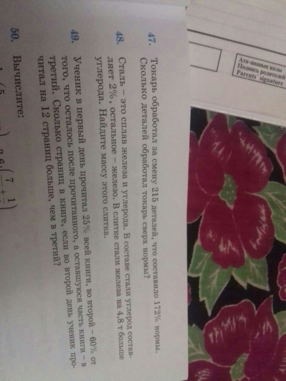 48. Если углерода - 2%, и на 4,8 т больше металла. Значит, что 4,8т = 98%(100% - 2%), 4,8т/100*2 = 96 кг углерода, то есть 0,096+ 4,8 = 4,896 т - масса слитка.