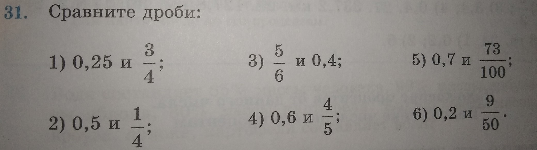 3)5/6 и 0,4=5/6 и 2/5=25/30>12/30