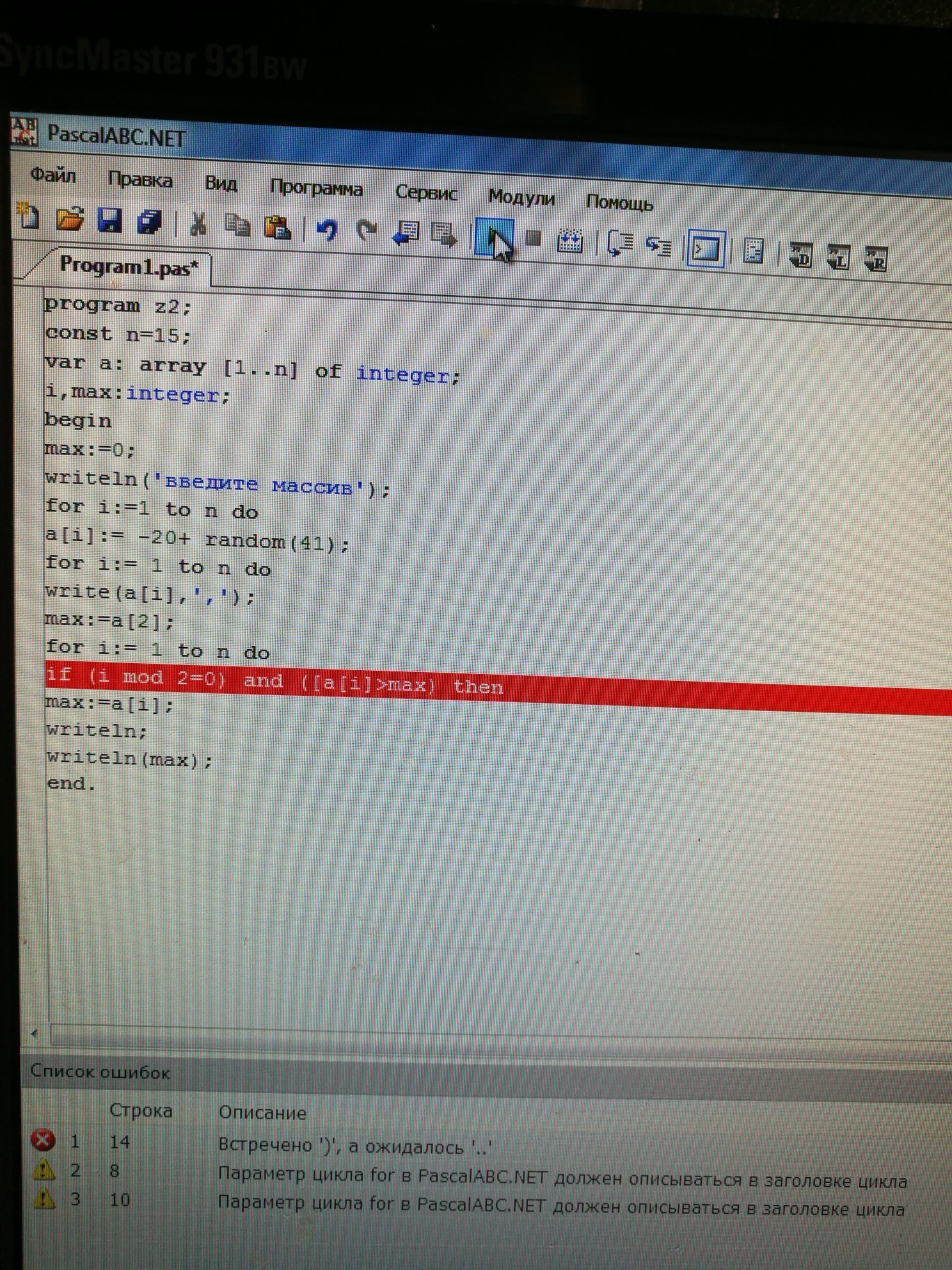 Перед a[i] "[" убери.