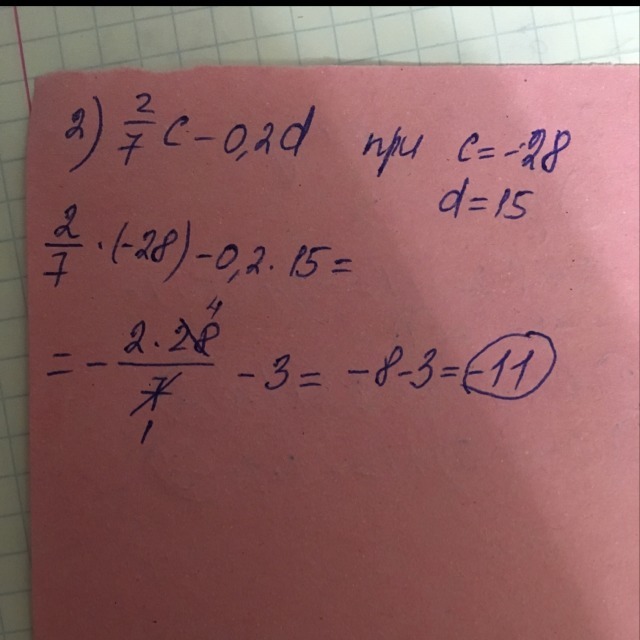 2/7*(-28)-0.2*15=-2/7*28-0.2*15=-2*4-0.2*15=-2*4-3=-8-3=-11