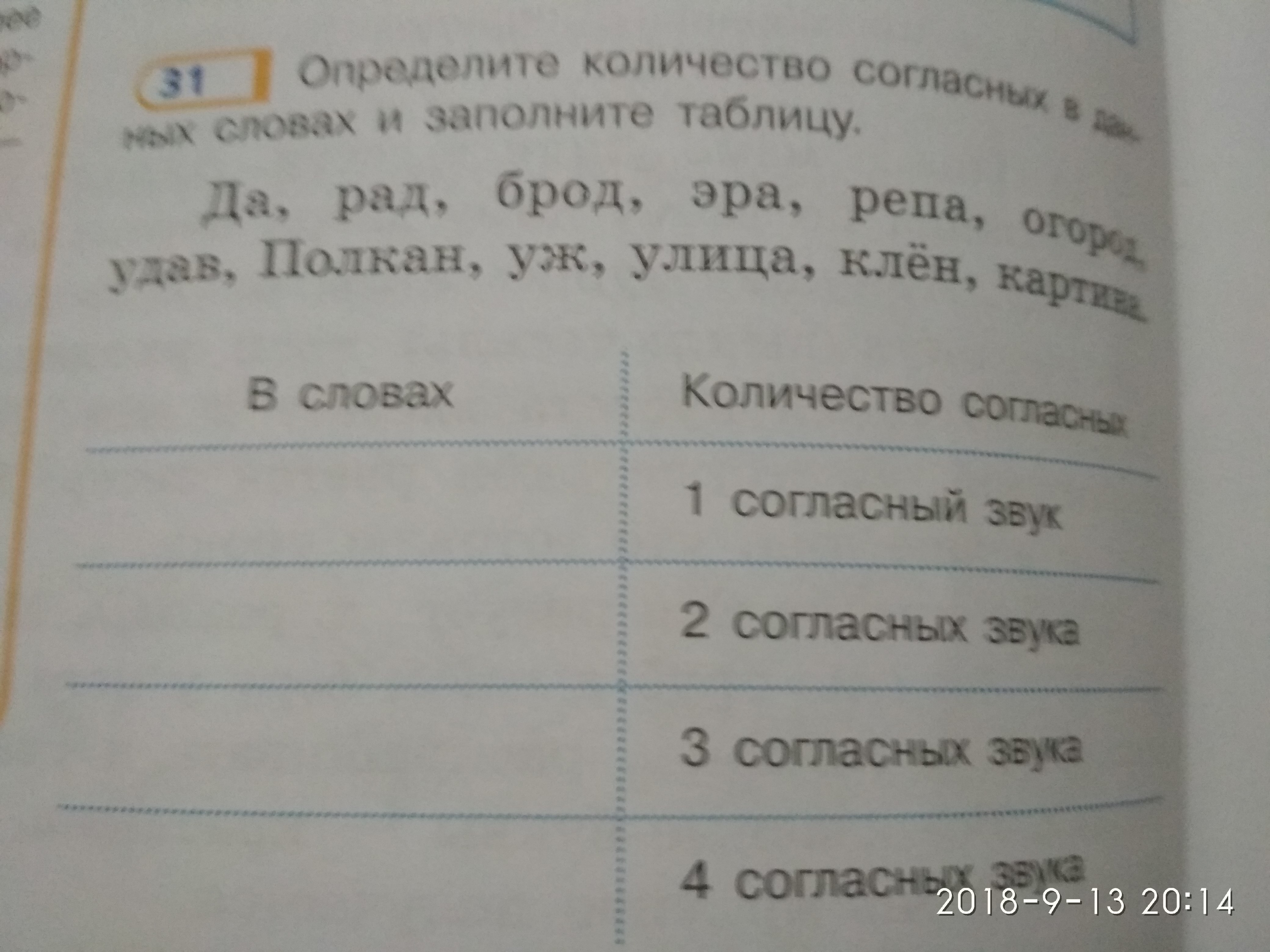 брод, огород, удав, улица, клен 3 согласных