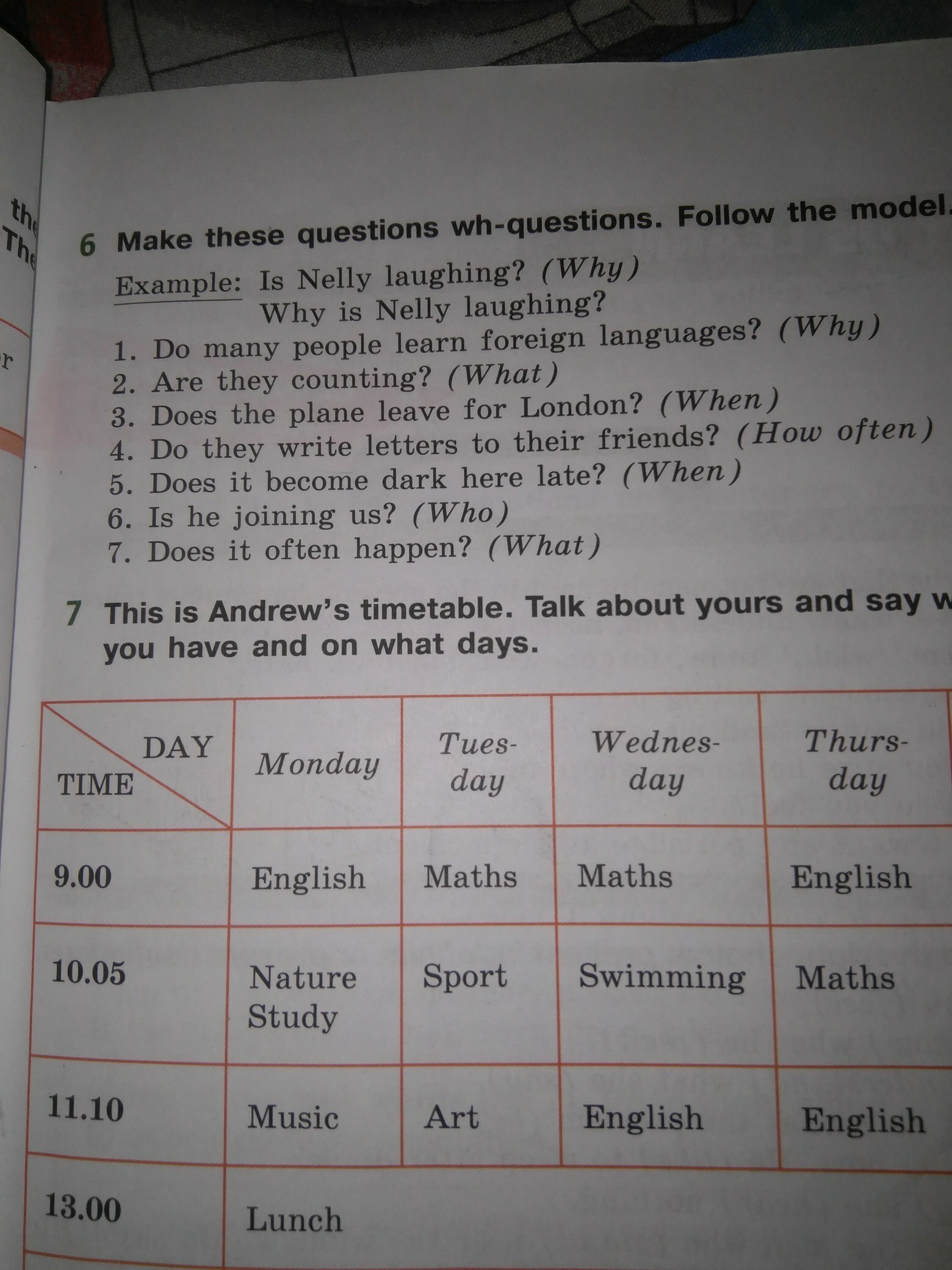 вначале каждого предложения вставляешь слова из скобок. например 6. Who is he joining us? все просто