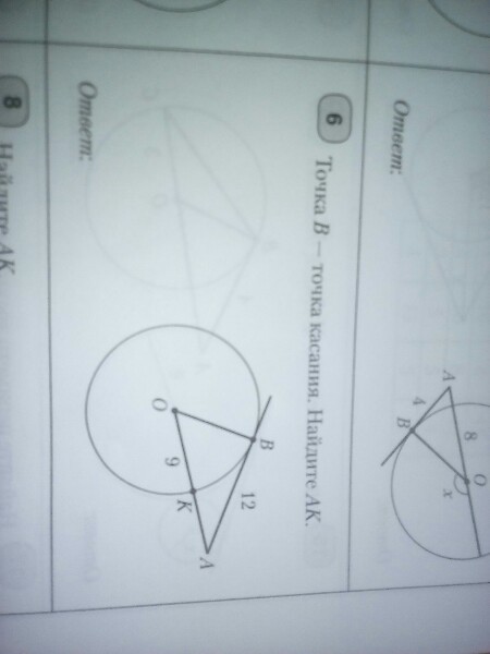 6) угол В = 90°, т. к. точка касания перпендикулярна середине окружности.