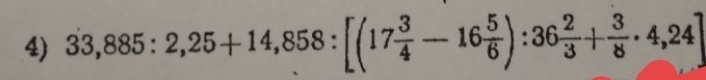 17 3/4-16 5/6=17 9/12-16 10/12=11/12 11/12:36 2/3=11/12*3/110=1/40=0,025 3/8*4,24=0,375*4,24=1,59 0,025+1,59=1,615 14,858:1,615=9,2 33,885:2,25=15,06 15,06+9,2=24,26