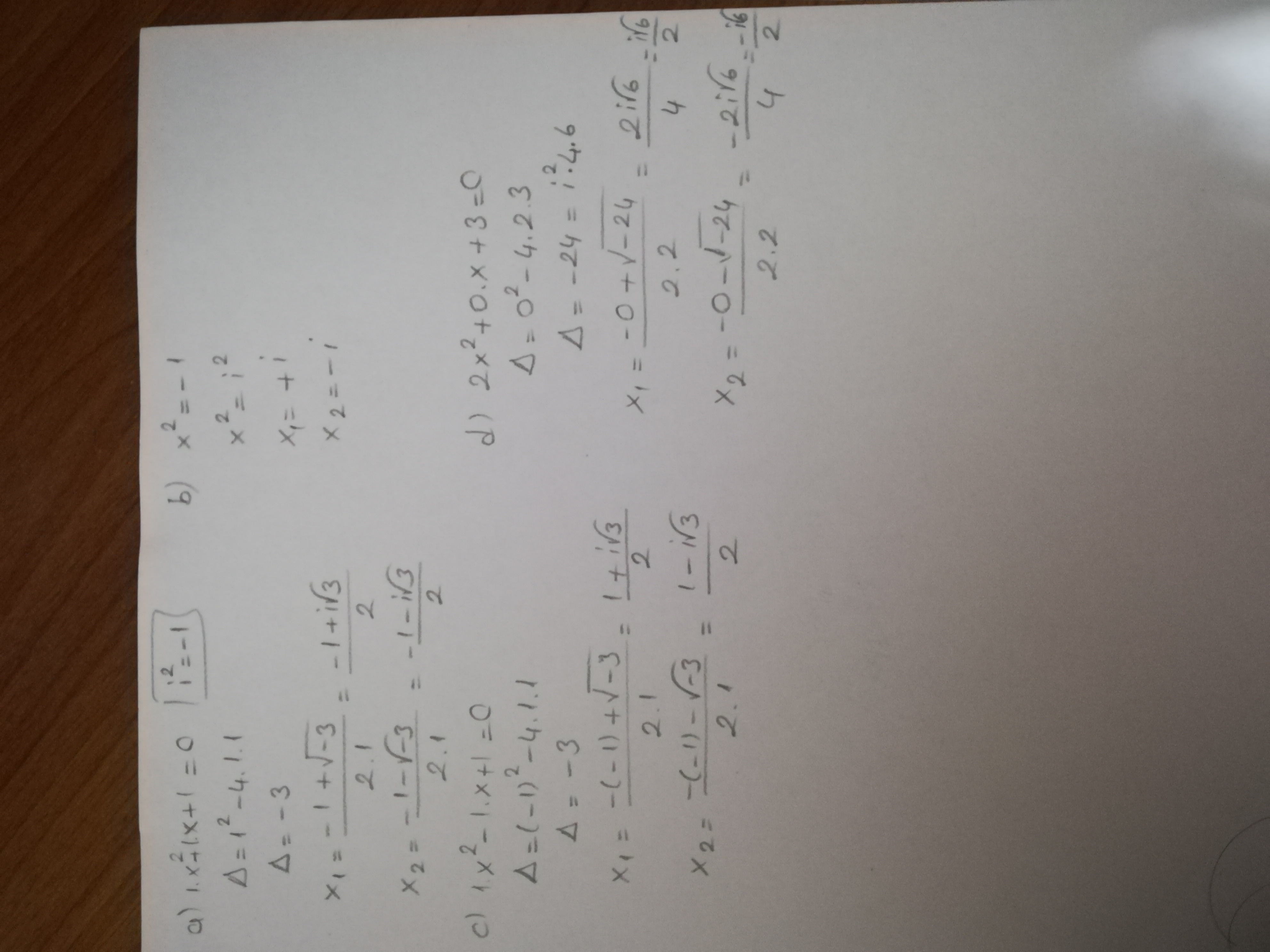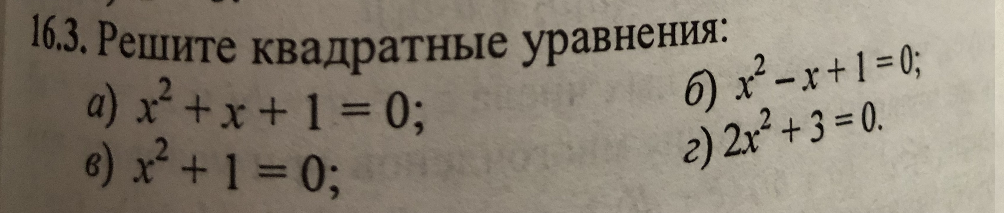 г) 2x² +3 = 0 ⇔ x² + 1,5 =0 ⇒ [ x = - √1,5 i ; x = √1,5 i.
