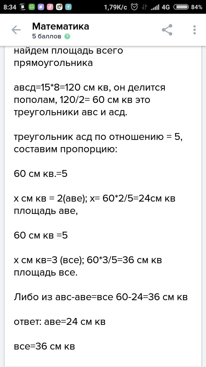 Длина прямоугольника ABCD равна 15 см, а ширина 8 см площадь треугольника ABE относятся к площади треугольника BCE как 2:3. Найдите площади треугольников ABE и BCE. ЗАРАНИЕ СПСССССЕ!!!!!!!!