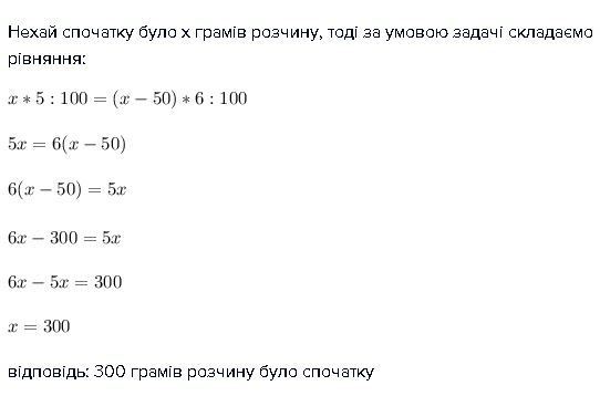 Нехай спочатку було х грамів розчину, тоді за умовою задачі складаємо рівняння: