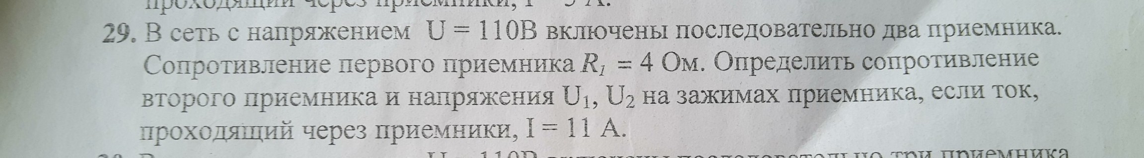 U=110 B R1=4 Ом I=11 A R2=? U1=? U2=?