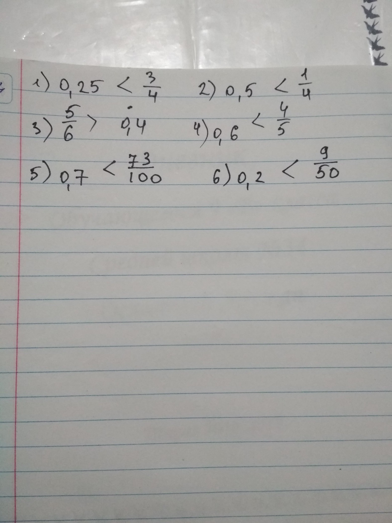 0.25 меньше. 2)0.5 больше. 3) 0.4 меньше. 4) 0.6 меньше 5) 0.7 меньше 6)0.2 меньше.