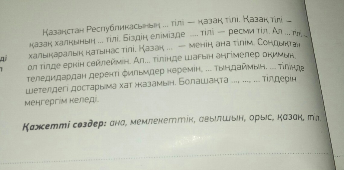 1 мемлекеттик,2 ана,3орыс,4агылшын,5тил,6казак,7орыс,8агылшын,9 агылшын ,орыс , мемлекеттик