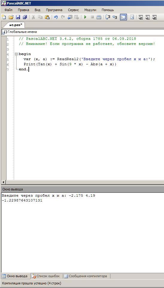 var (x, a) := ReadReal2('Введите через пробел х и а:');