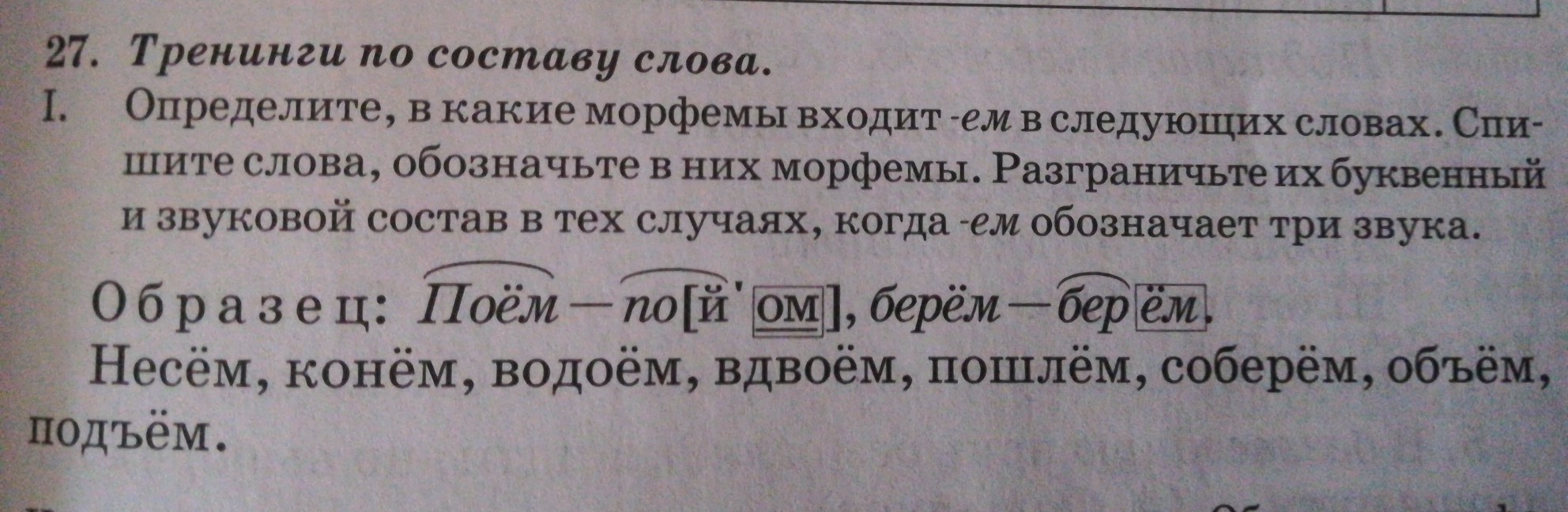 Несём - в -ём 2 звука, конём - 2 звука, водоём - 3 звука, вдвоём - 3 звука, пошлём - 2 звука, соберём - 2 звука, объём - 3 звука, подъём - 3 звука.