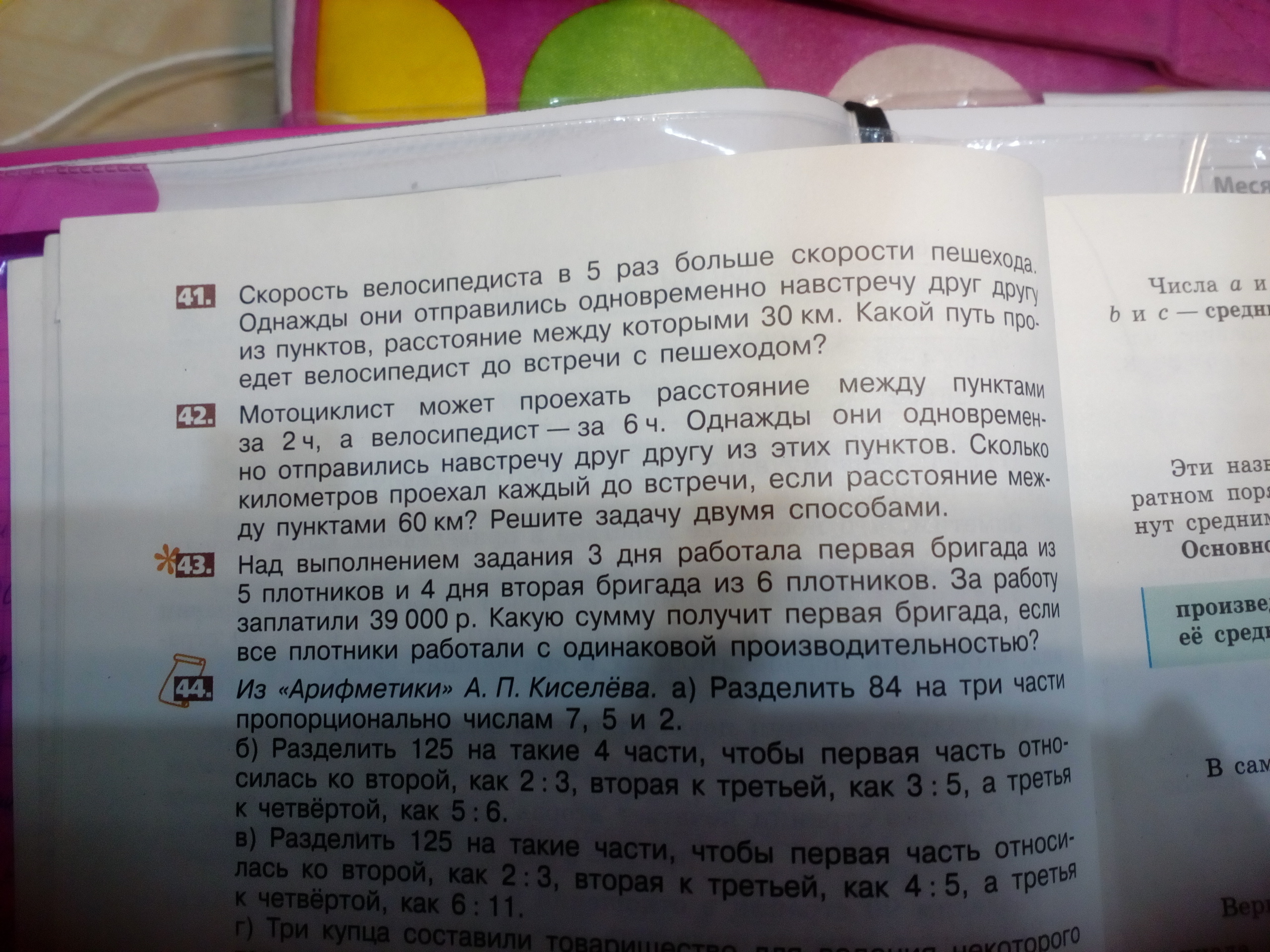 Через 1.5 часа они встретятся, мотоц. проедет 45 км, а велос. проедет 15 км