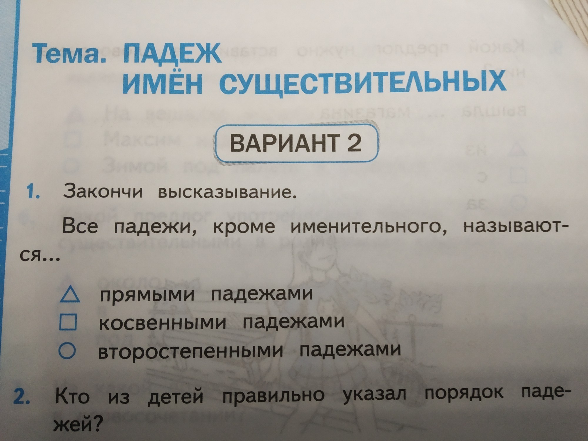 Все падежи, кроме именительного, называются косвенными.
