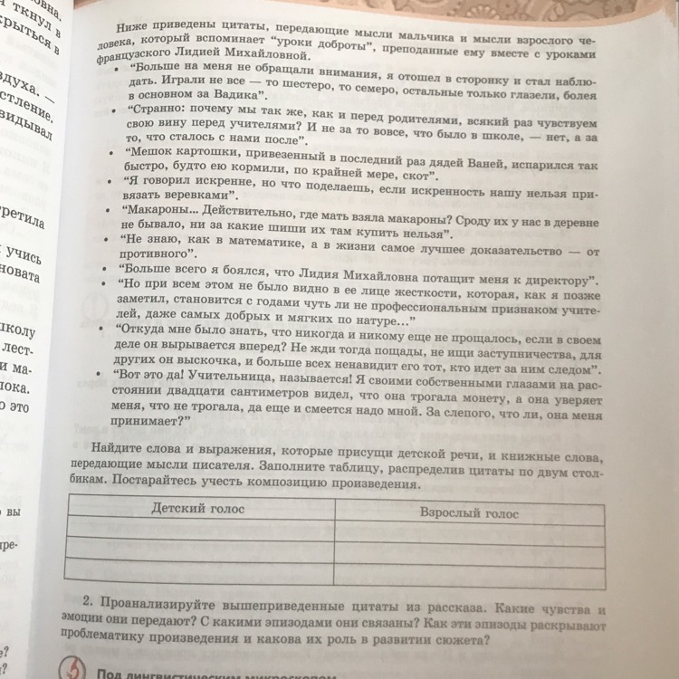 Задание номер 2. В самом низу под таблицей. Цитаты сверху.