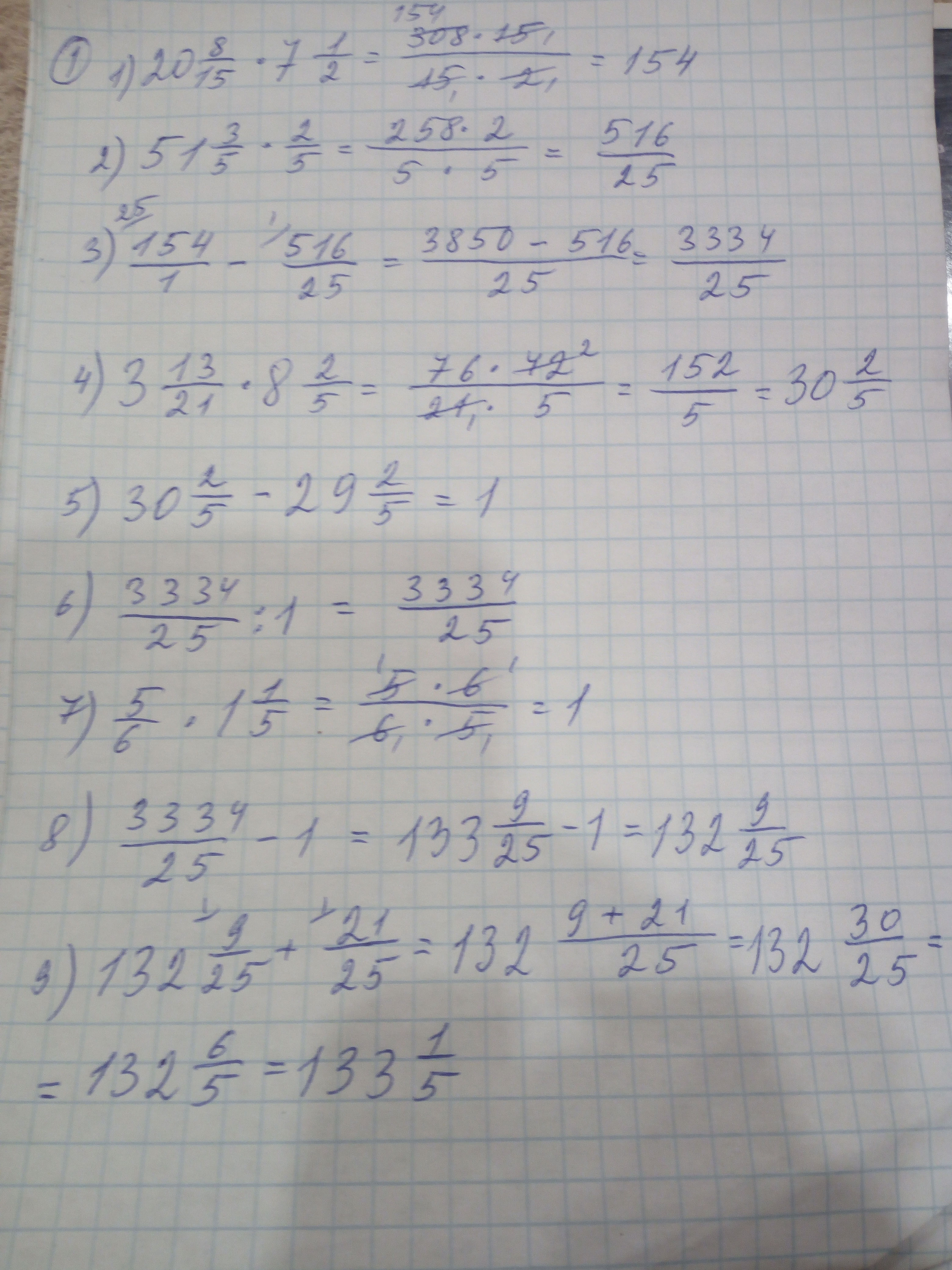 (20 8/15 (20 целых 8/15 / это дробь) *7 1/2-54 3/5*2/5):(3 13/21*8 2/5-29 2/5) - 5/6 * 1 1/5 +21/25