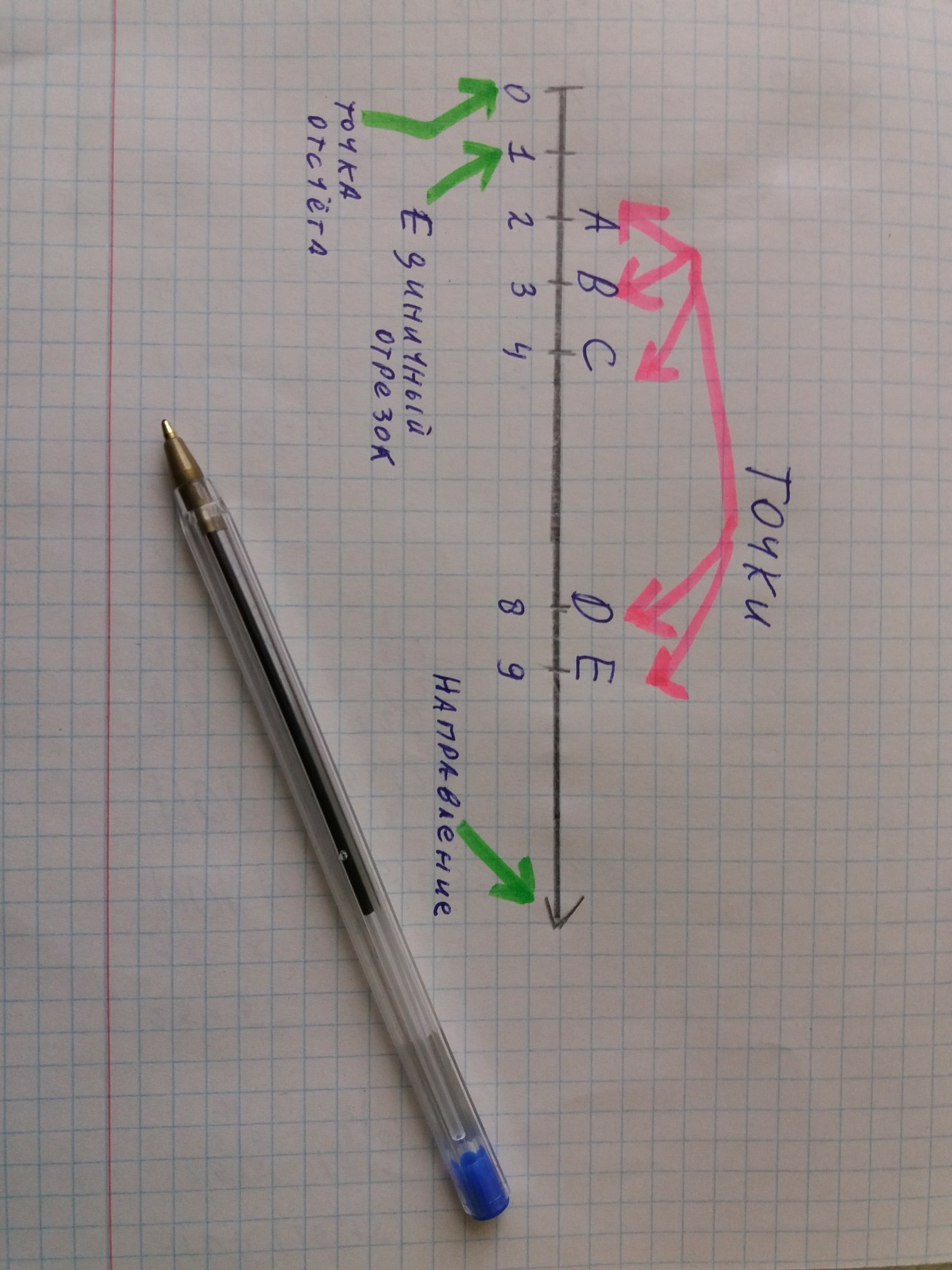 Здравствуйте! Для начала определимся, что такое координатный луч. Луч- линия, имеющая начало, но не имеющая конца.