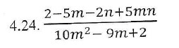 2-5m-2n+5mn / 10m²-9m+2 = (2(1-n)-5m(1-n)) / ((5m+2)(2m+1)) = ((2-5m)(1-n)) / ((5m+2)(2m+1)) = (-(5m+2)(n-1)) / ((5m+2)(2m+1)) = - (n-1) / (2m+1)