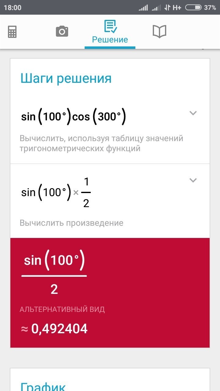 косинус 300° = 1/2, 1/2 умножаем на синус 100 и получается синус 100/2