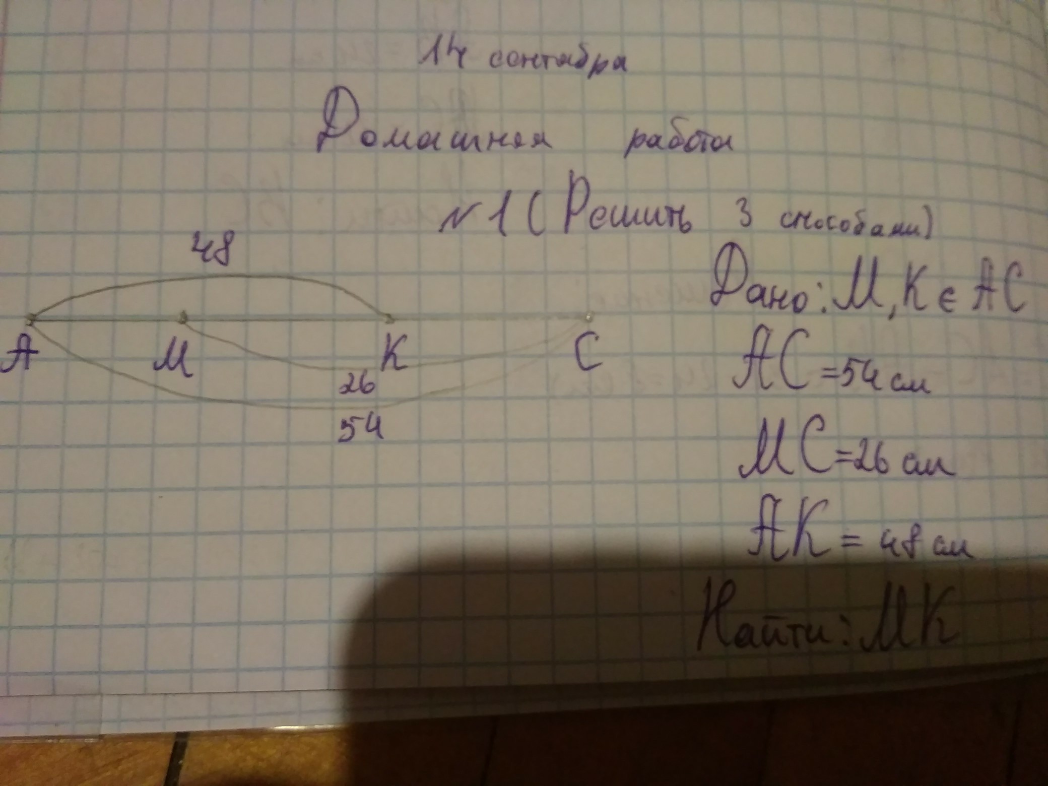 1)Кс=ас-ак=6 Мк=мс-кс=26-6=20 2) ам=ас-мс=28 Мк=ак-ам=48-28=20 3) ам=ас-мс=28 Кс=ас-ак=6 Мк=ас-ам-кс=54-28-6=20