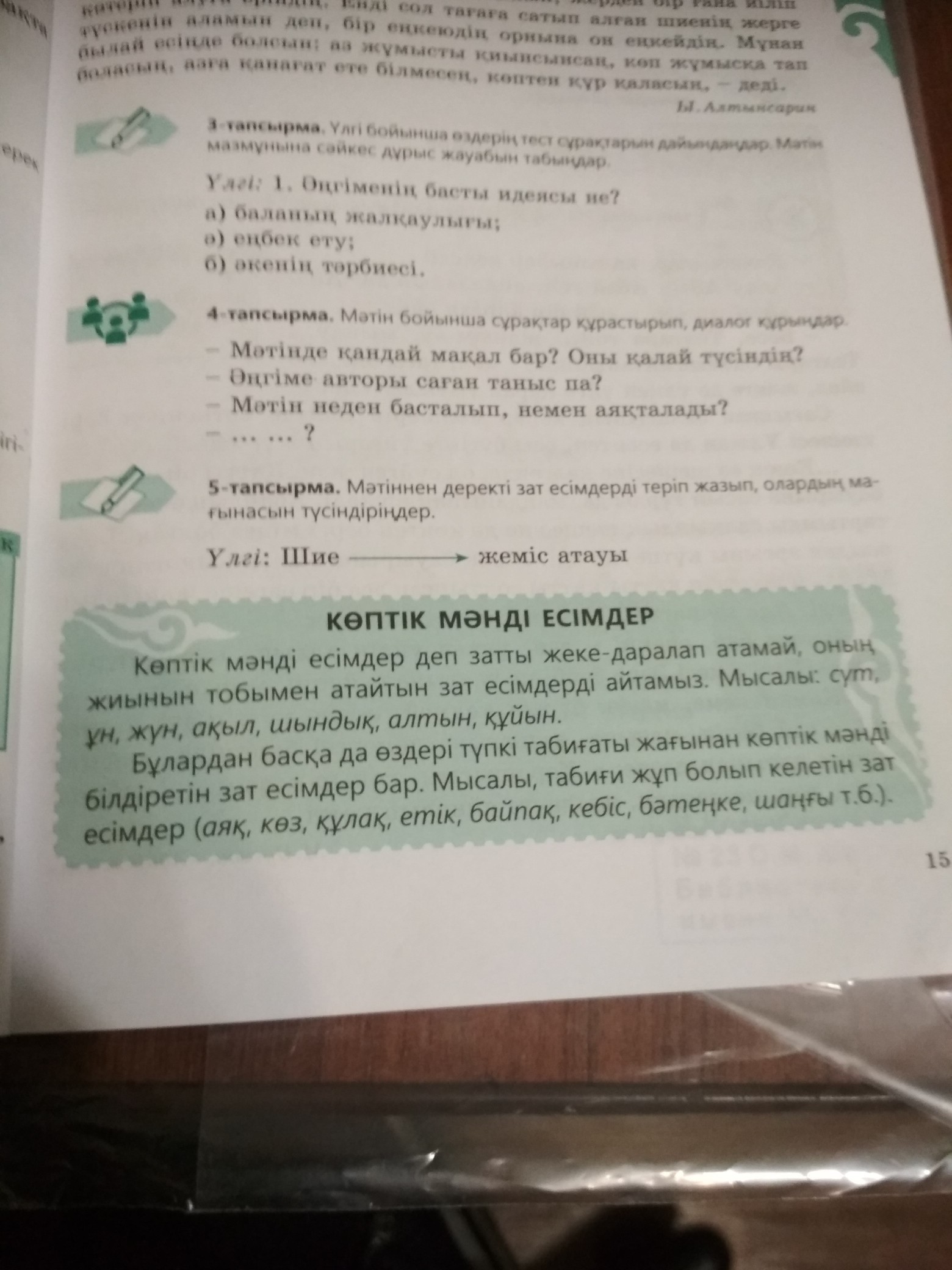 Сүт -белгілі бір сұйықтық Ұн - бидай өнімі Жүн - малдың жүні Алтын- химиялық элемент Аяқ-дене мүшесі Көз-дене мүшесі Құлақ-есту мүшесі Етік-аяққа киілетін зат Байпақ -арнайы аяққа тоқылған немесе тігілген киім Шаңғы-ағаштан жасалынады қардан сырнау үшін пайдаланылады