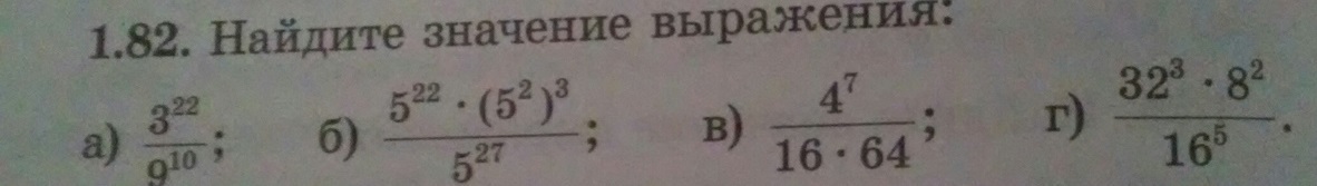 frac{32^{3}*8^2}{16^{5}}= frac{(2^5)^{3}*(2^3)^2}{(2^4)^5}}= frac{2^{15}*2^6}{2^{20}}}=2^{15+6-20}=2^1=2