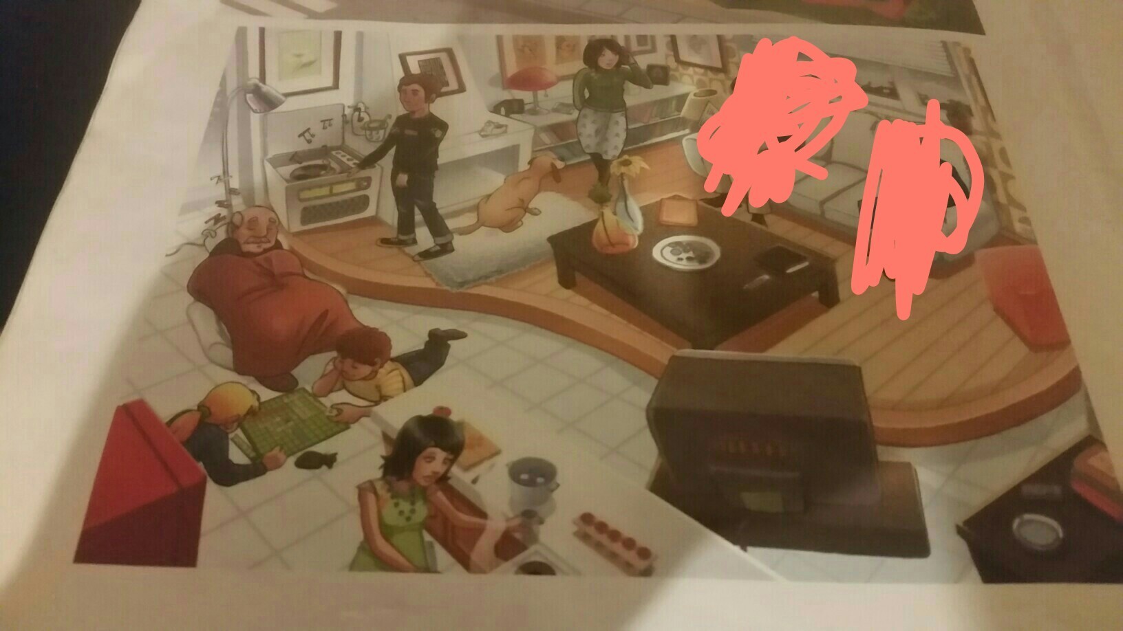 The woman(Mother) in the Green dress cooking dinner. The man (grandpa) is sleeping. The Childs (sons) playing chess. The man (father) is dancing.