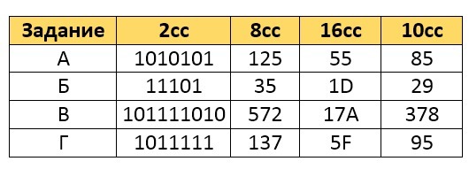 А: 125₈=1*8²+2*8¹+5*8⁰=64+16+5=85₁₀