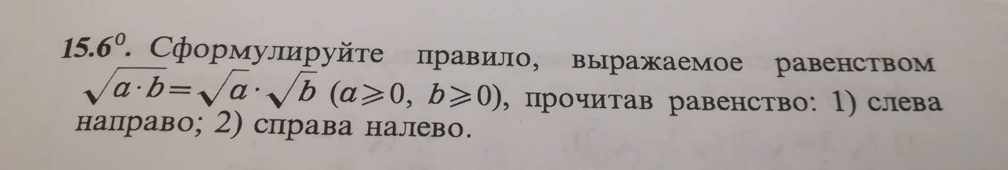 1) Корень произведения ab равен произведению корней a и b, при a большем или равном нулю и b большем или равном нулю.