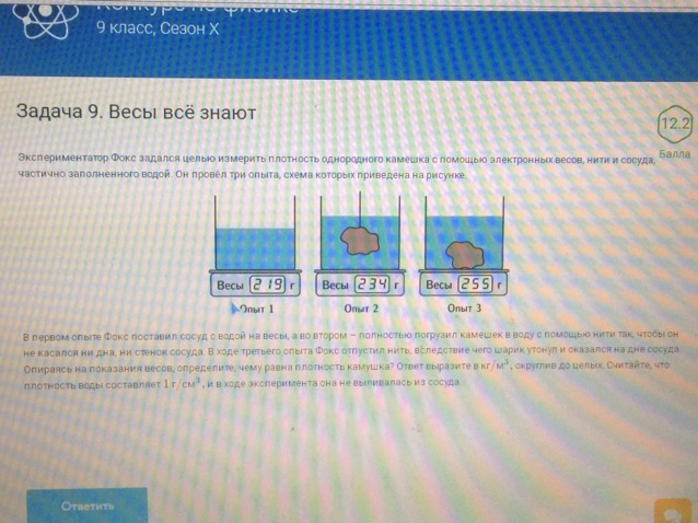 Итого: плотность камня 3.4 г/см3 или 3400 кг/м3.