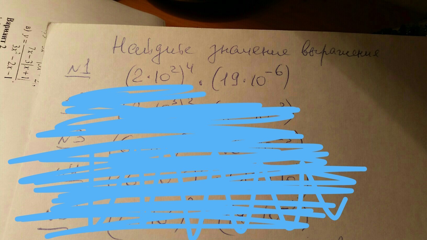(2 cdot 10^{2} ) ^{4} cdot (19cdot 10^{ - 6}) = \  = 16 times 10 ^{8} cdot19 times 10 ^{ - 6}  =  \  = 304cdot {10}^{8 - 6}  = 304cdot100 =  \  = 30400
