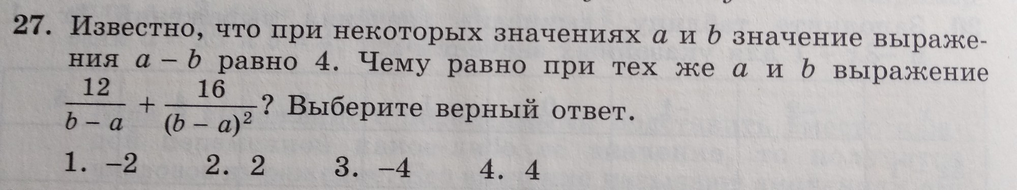 (12/a-b)+(16/(b-a))^2=12/4+16/16=3+1=4