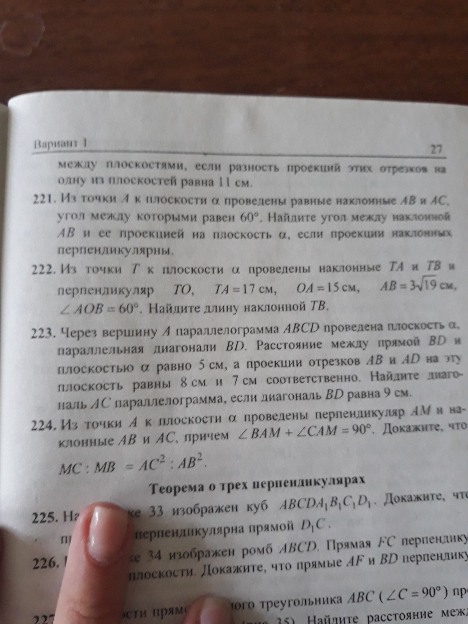ТО^2 = 17^2 - 15^2 = (17-15)(17+15) = 2*32 = 64 ---> ТО = 8 (3V19)^2 = 15^2+OB^2-2*15*OB*cos(60°) 171-225 = OB^2 - 15*OB OB^2 - 15*OB + 54 = 0 по т.Виета корни (6) и (9) 1) ОВ=6; ТВ^2 = 8^2+6^2; ТВ = 10 2) ОВ=9; ТВ^2 = 8^2+9^2; ТВ = V145