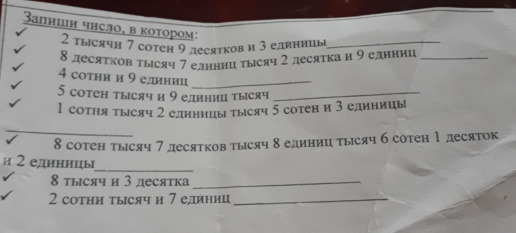 Это ж легко. Смотри: 2 тысячи 7 сотен 9 десятков 3 единицы тупо записываешь вместе. 2 тысячи это 2000; 7 сотен это 700; 9 десятков это 90; 3 единицы это 3; Просто складываешь всё вместе и получаешь число 2793