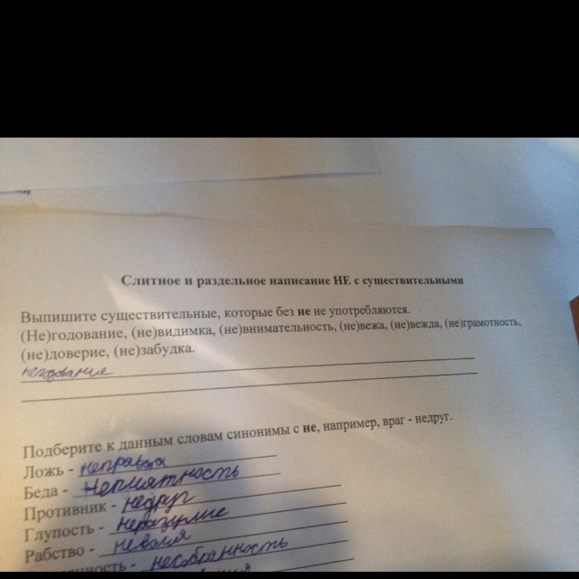 Негодование, невидимка, невнимательность, невежа, невежда, неграмотность, недоверие, незабудка.