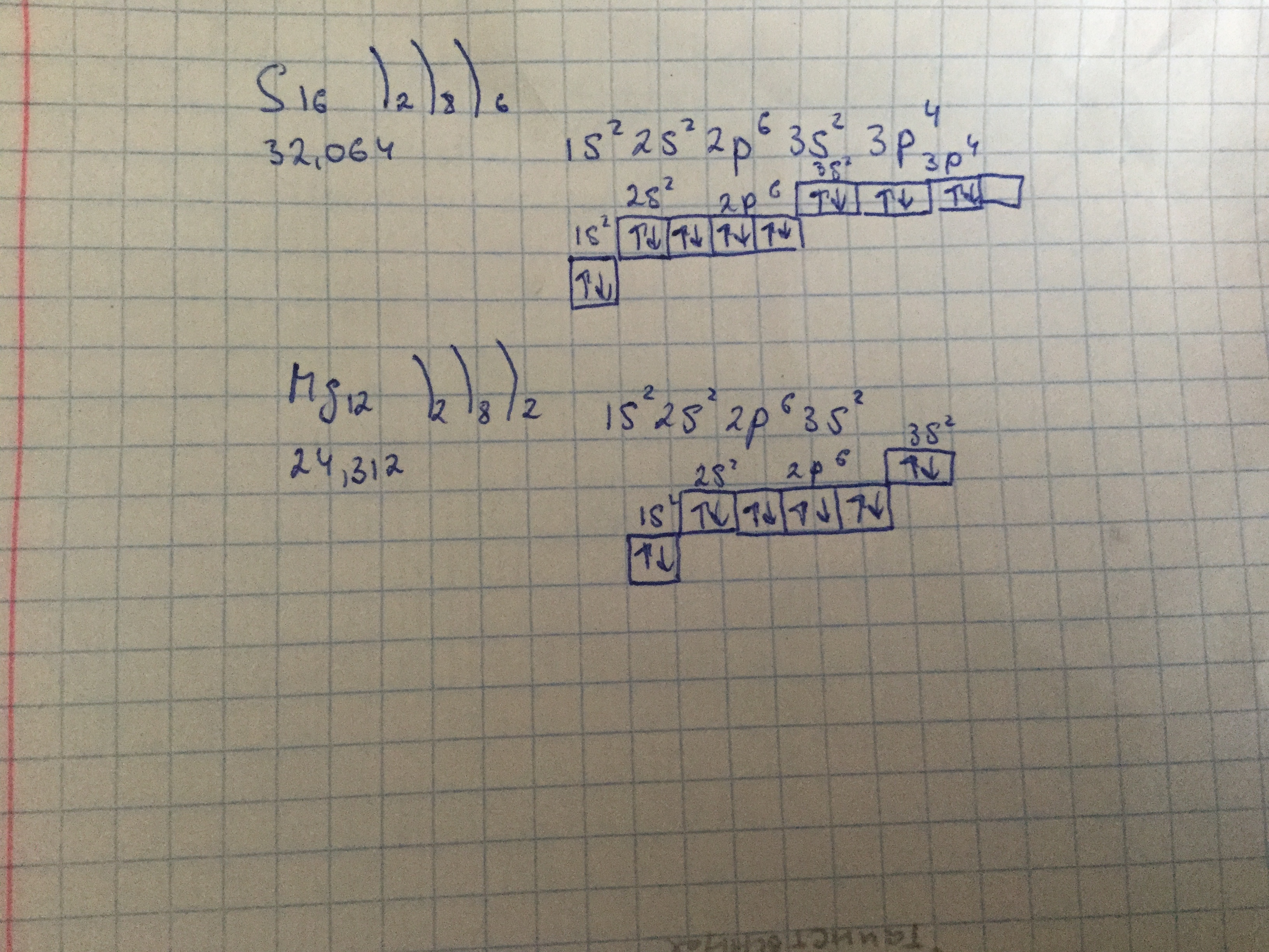 Напишите пожалуйста в таком же виде химические элементы номер 16 и 12 Буду очень благодарна.Очень Срочно.