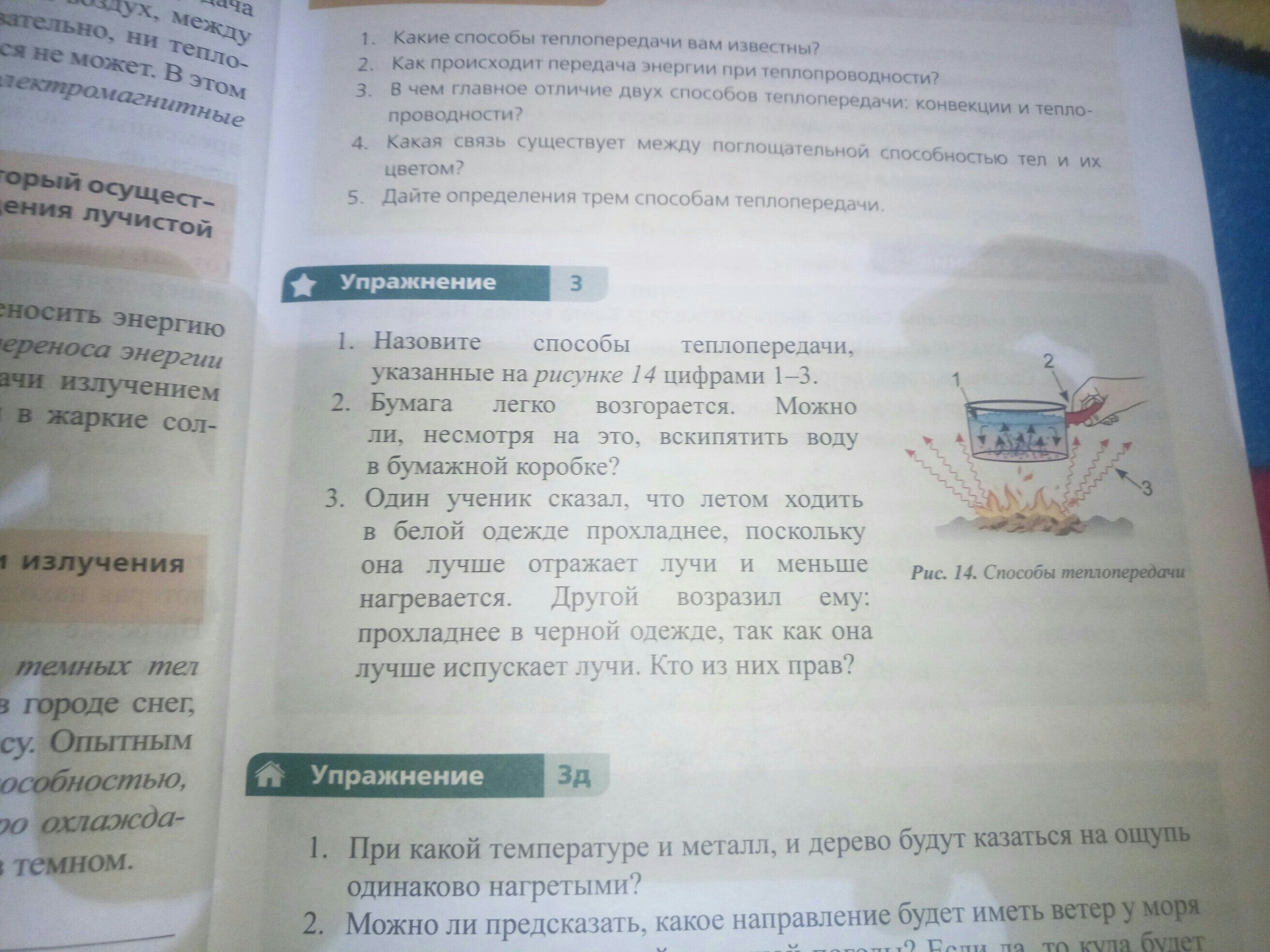 2.Можно т.к температура кипения воды - 100 градусов,а температура возгорания бумаги - 120 градусов,за счет кипения бумага не будет возгоратся.Но при одном условии что коробка будет заполнена полностью водой,иначе бумага загорится.