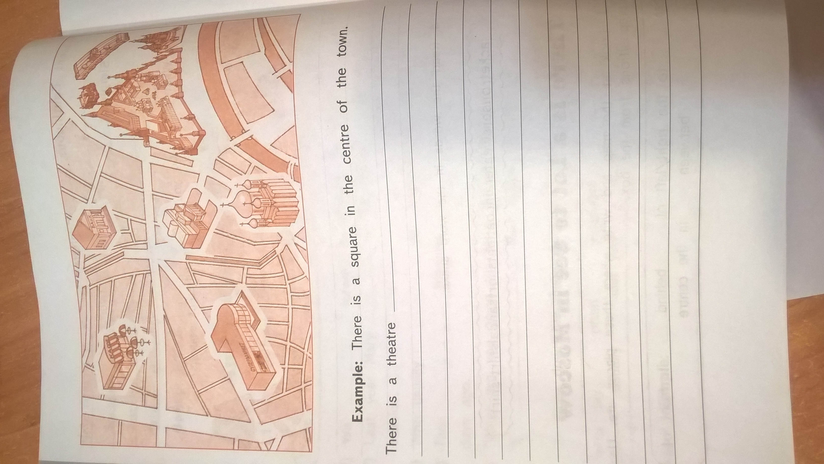 There is a theatre behind the churh (registry office) . There a Town Hall is between a theatre and a squere. There is a Bank to the right of restaurant. The theatre left of a Town Hall.